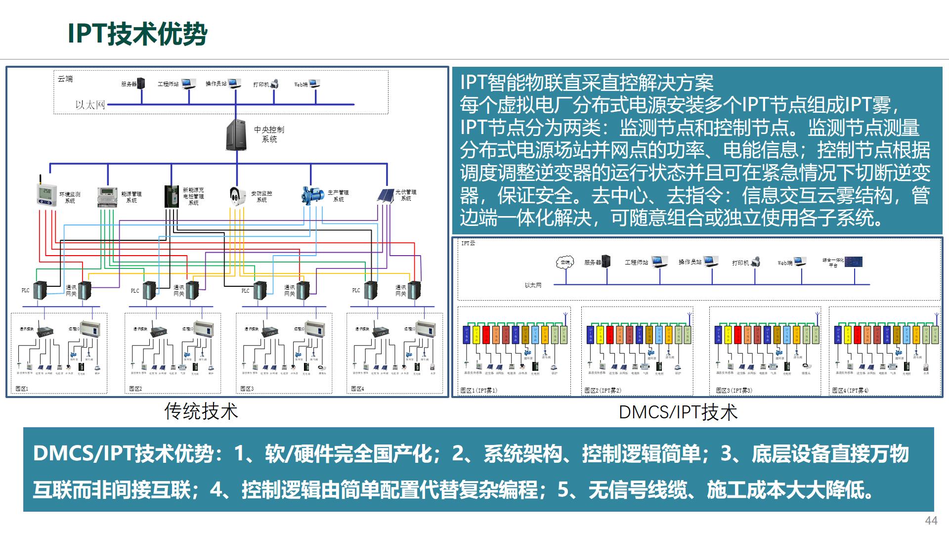落實雙碳目標(biāo)離不開分布式光伏監(jiān)控,在光伏臺區(qū)通過現(xiàn)有“二合一”融合終端加裝IPT霧網(wǎng)絡(luò)分布式智能測控節(jié)點裝置,導(dǎo)軌式安裝香煙盒大小,完全分布式的方案,監(jiān)控各個設(shè)備的運行互不干擾,信息的交互按照指定的測控周期進(jìn)行,最小測控周期可達(dá)毫秒級別,完全滿足時效性要求,性價比高真正實現(xiàn)萬物互聯(lián),在增量臺區(qū)可以與現(xiàn)有融合終端作為內(nèi)嵌模塊升級為“三合一”實現(xiàn)存量、增量分布式光伏的全覆蓋,對下仍采用“融合終端-智能電表-逆變器”模式。IPT裝置還可以應(yīng)用在用戶能耗監(jiān)測、綜合能源、新型負(fù)荷管理、配電自動化等業(yè)務(wù)領(lǐng)域。