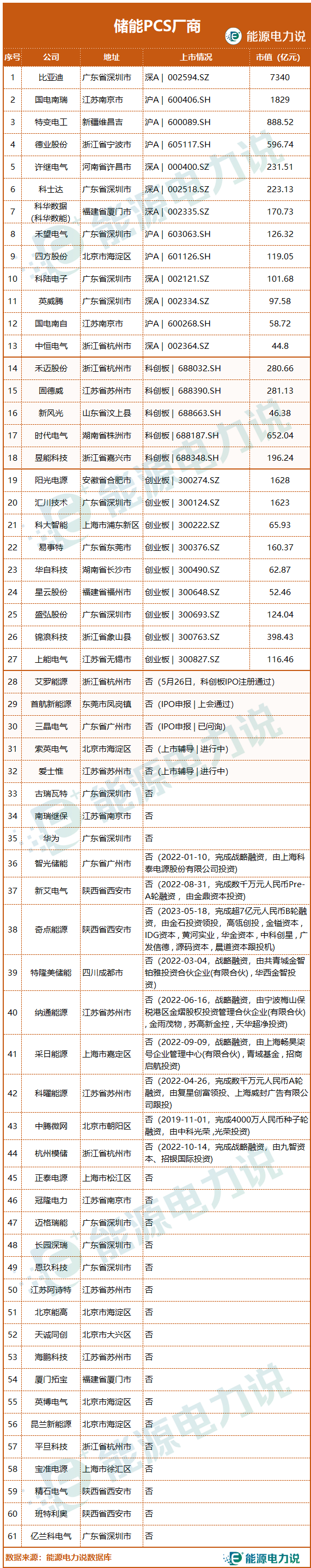 能源電力說(shuō)根據(jù)公開(kāi)數(shù)據(jù),整理了61家有儲(chǔ)能PCS產(chǎn)品的廠商。