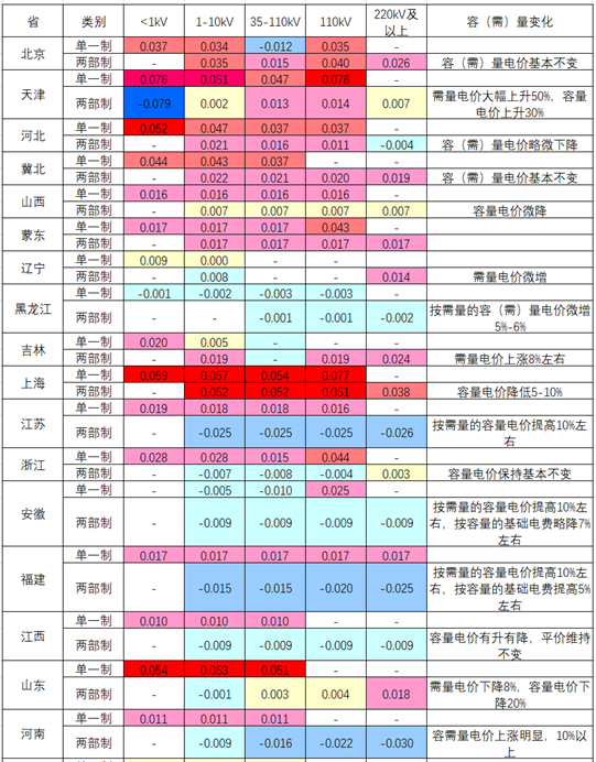 二、新版輸配電價(jià)漲跌分析