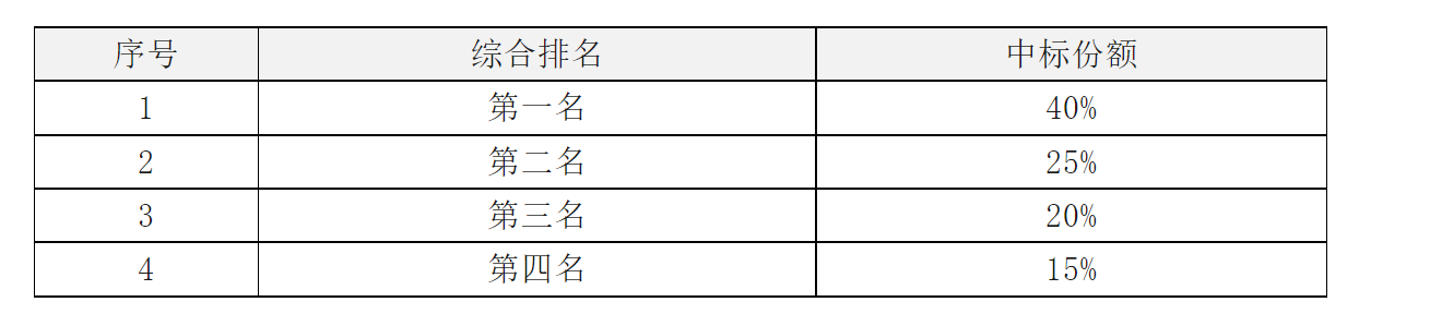 據(jù)招標(biāo)公告,本項目中標(biāo)人數(shù)量為4個,每個中標(biāo)人對應(yīng)的份額如下: