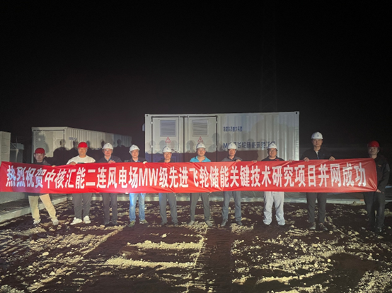 該項目為“飛輪儲能+ 鋰電混合儲能”新能源場站調(diào)頻應用,3臺MW級飛輪陣列協(xié)同控制與3MW鋰電組成混合儲能系統(tǒng),成功并入二連浩特99MW風電場,為其提供調(diào)頻服務。通過混合儲能系統(tǒng)在網(wǎng)的長期運行,探索飛輪、電池與風電場共同配合滿足一次調(diào)頻要求的運行方式,為風電場一次調(diào)頻尋找最經(jīng)濟的解決方案,具有重大的示范意義。