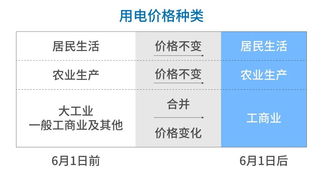 自6月1日起我省執(zhí)行第三監(jiān)管周期輸配電價,工商業(yè)用戶用電價格由上網(wǎng)電價、上網(wǎng)環(huán)節(jié)線損費用、輸配電價、系統(tǒng)運行費用、政府性基金及附加組成。將大工業(yè)用電、一般工商業(yè)及其它用電歸并為工商業(yè)用電,歸并后,我省電力用戶用電價格分為居民生活用電、農業(yè)生產用電和工商業(yè)用電三類。