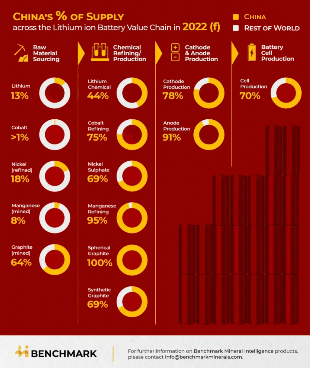 中國儲能網(wǎng)訊:2022年10月,英國著名鋰電池供應(yīng)鏈研究機構(gòu)Benchmark minerals發(fā)表了一篇中國在磷酸鐵鋰電池產(chǎn)業(yè)鏈擁有統(tǒng)治優(yōu)勢的文章,文中的一張配圖當(dāng)時傳遍了電池從業(yè)者的朋友圈。