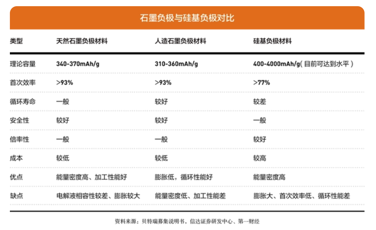 由于市場主流石墨負極在實際應(yīng)用中,石墨比容量達到了約330—370mAh/g,已觸及理論比容量372mAh/g的天花板;但硅的比容量超石墨10倍,能達4200mAh/g。