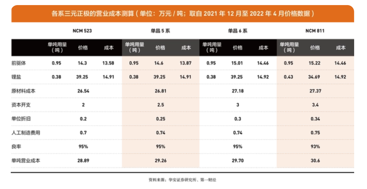 刀片電池采用磷酸鐵鋰正極材料。由于原料價格不斷波動,目前三元與磷酸鐵鋰的價差有所縮窄,但整體價格還是三元高于磷酸鐵鋰。