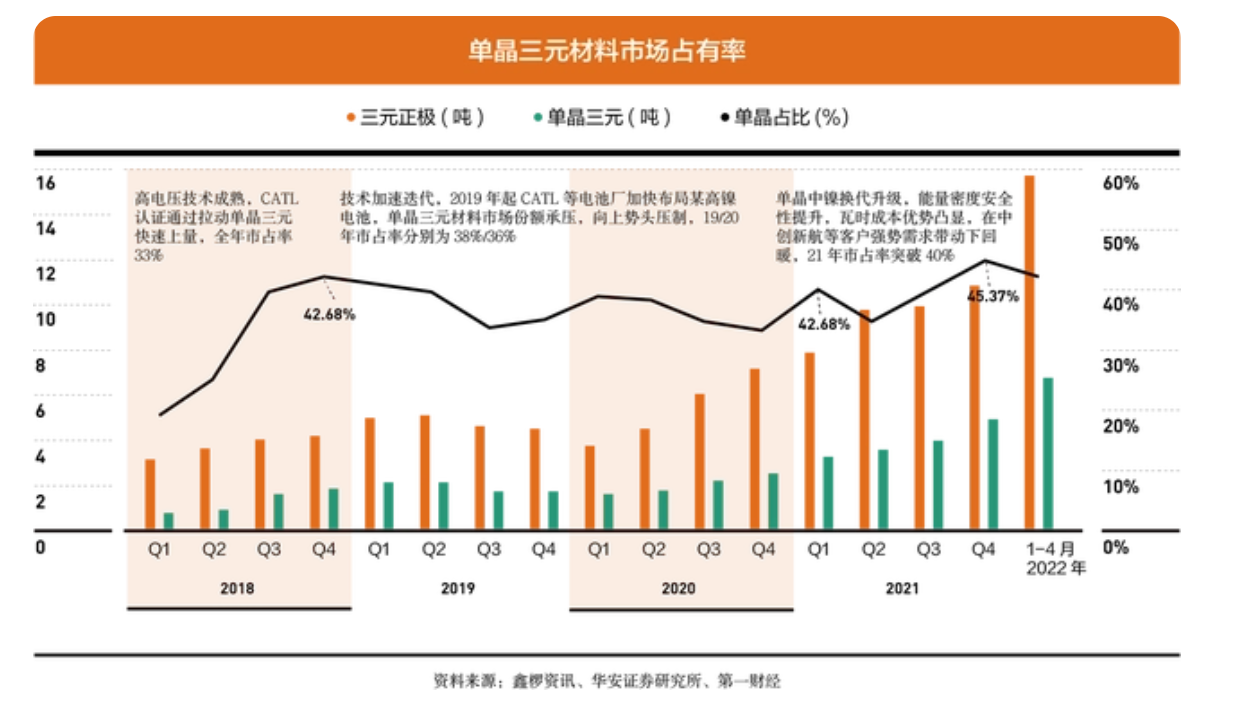 而隨著動力電池技術(shù)革新加速,傳統(tǒng)材料逐漸不能滿足電池降本、提升能量密度等需求,單晶三元、硅基負極等新材料應(yīng)用加速。材料和化學體系創(chuàng)新越來越成為未來電池產(chǎn)業(yè)鏈企業(yè)的核心競爭力。
