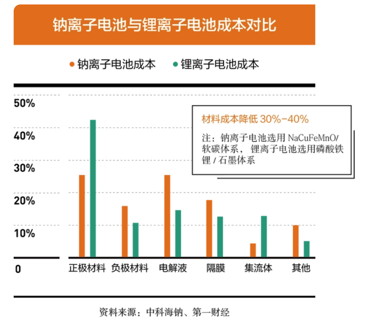 從成本占比來看,中科海鈉測算鈉電池的負極材料占鈉電池總成本的16%左右,高于鋰電池的5%-8%。