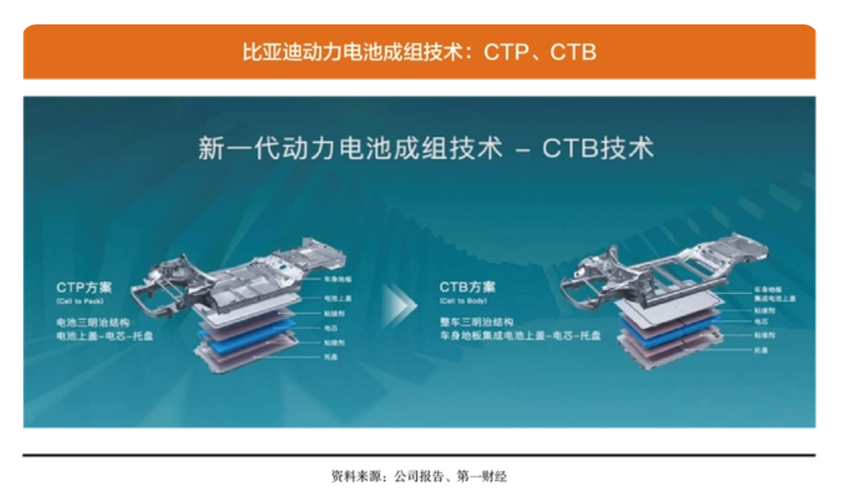 CTB是比亞迪新提出的一種全新電芯集成方式。從嚴格意義上來講,CTB術(shù)是CTC技術(shù)的一種,也是CTP技術(shù)的延伸。