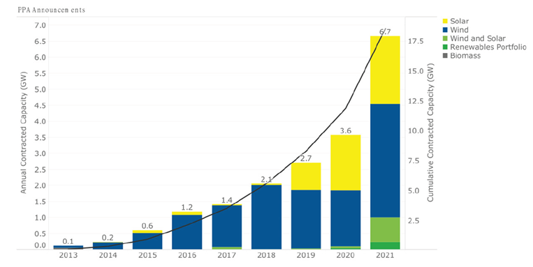 圖1 歐盟簽訂PPA合約的可再生能源容量