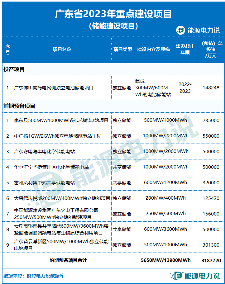 在廣東發(fā)改委發(fā)布的《廣東省2023年重點建設(shè)項目計劃》中,9個前期預(yù)備項目獨立儲能項目被列入其中,總規(guī)模達(dá)5.65GW/13.9GWh,單站最大規(guī)模達(dá)1GW/2.2GWh,GWh級大型獨立儲能電站項目數(shù)量達(dá)4個,廣東省電網(wǎng)側(cè)大型獨立儲能需求將逐漸開始放量。