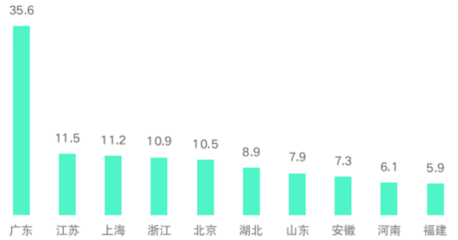 圖:公共充電樁TOP10省份(萬臺(tái))