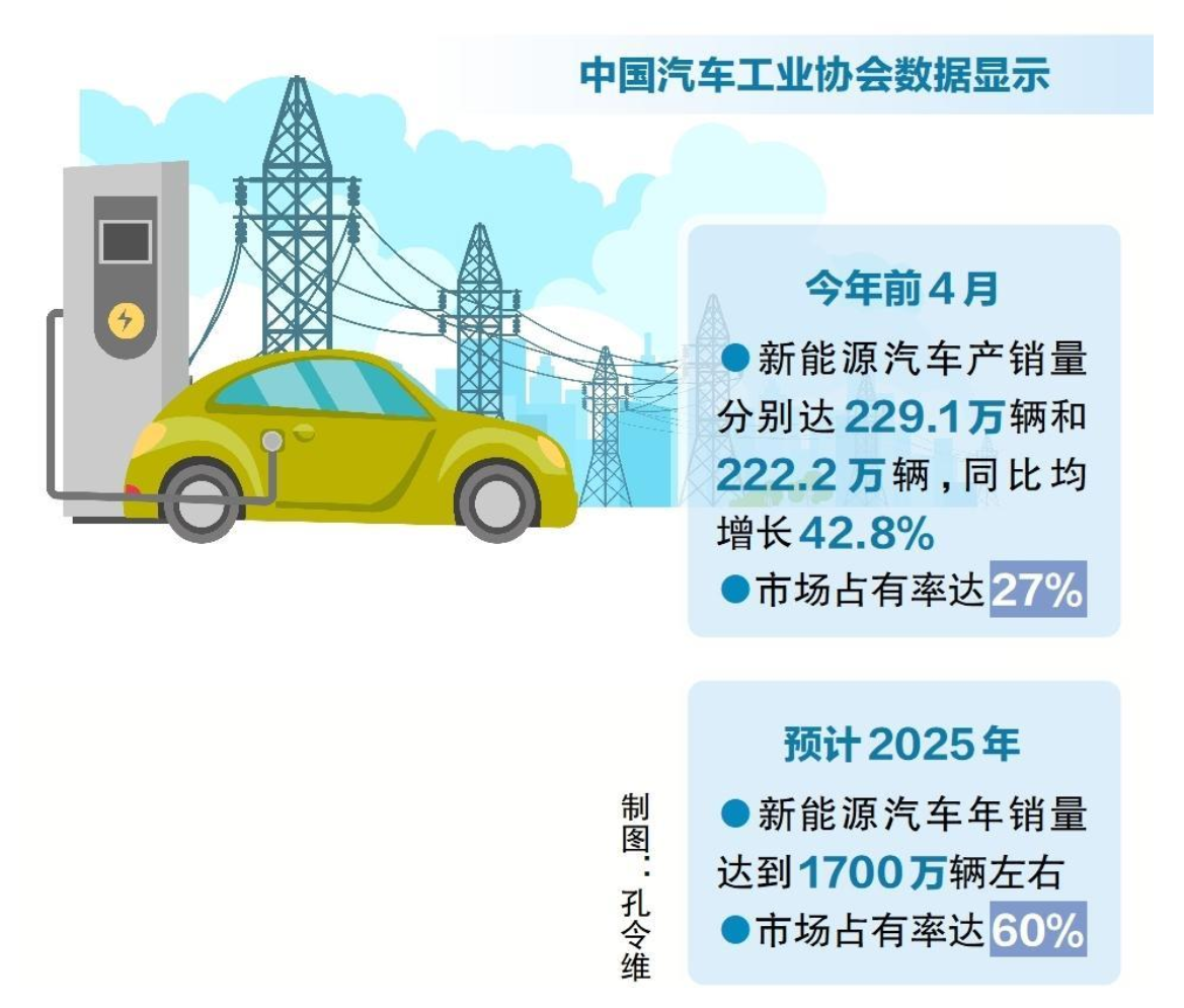 新能源汽車是全球汽車產業(yè)轉型升級、綠色發(fā)展的主要方向,也是我國汽車產業(yè)高質量發(fā)展的戰(zhàn)略選擇,發(fā)展空間廣闊。行業(yè)預計,今年我國新能源汽車銷量將達到900萬輛左右,繼續(xù)實現(xiàn)快速增長;2025年新能源汽車市場占有率將接近甚至達到60%,年銷量達到1700萬輛左右。