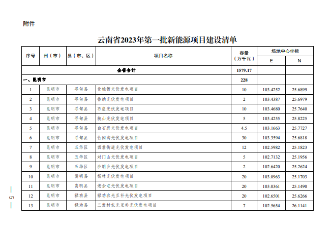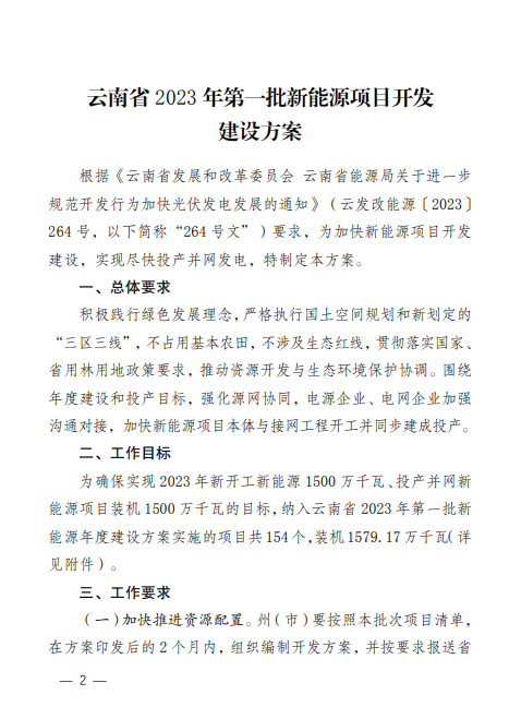 2023年度云南第一批新能源建設(shè)方案原文如下。
