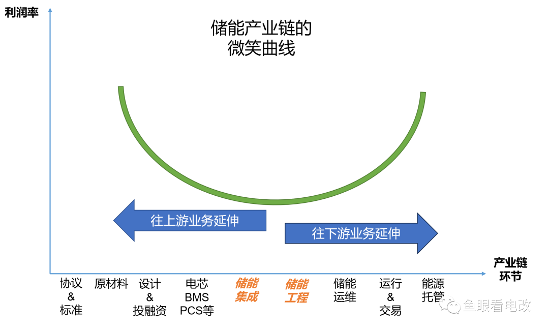 參考IT行業(yè)的“微笑曲線”模型,儲能產(chǎn)業(yè)鏈也呈現(xiàn)出“兩頭高、中間低”的微笑曲線。