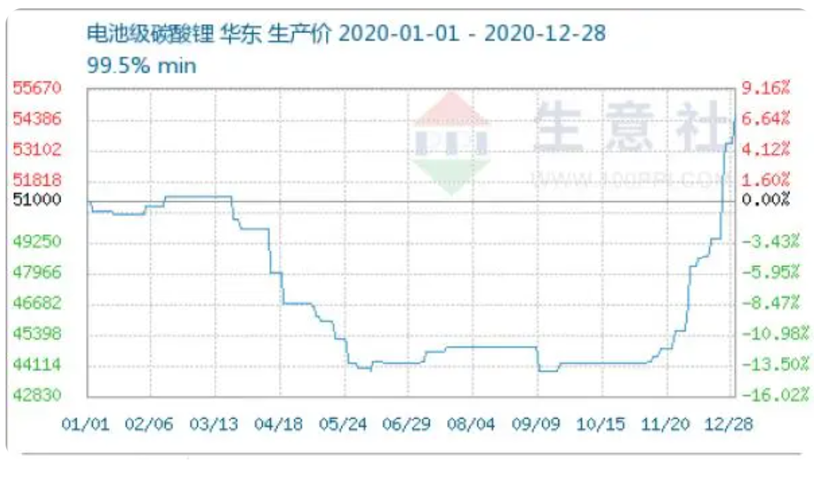 然而,去年的鋰價(jià)卻一度“飆瘋了”。去年11月7日,無(wú)錫電子盤國(guó)內(nèi)電池級(jí)碳酸鋰現(xiàn)貨平均價(jià)格為61.5萬(wàn)元/噸,同日,上海有色網(wǎng)的電池級(jí)碳酸鋰平均價(jià)格為56.35萬(wàn)元/噸。