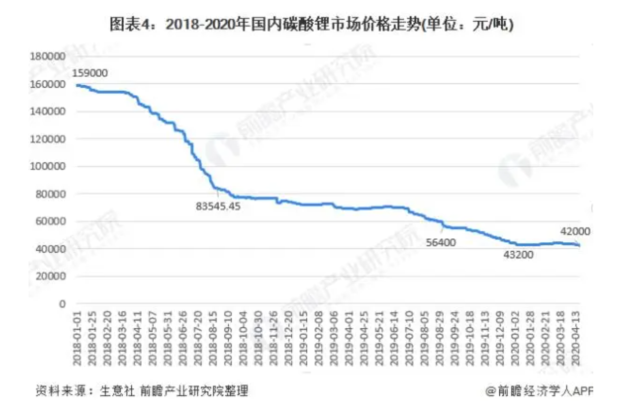 在上一輪2018年—2020年的鋰價(jià)下跌周期中,國(guó)內(nèi)電池級(jí)碳酸鋰價(jià)格一度跌至至2020年6月的4.1萬(wàn)元/噸。