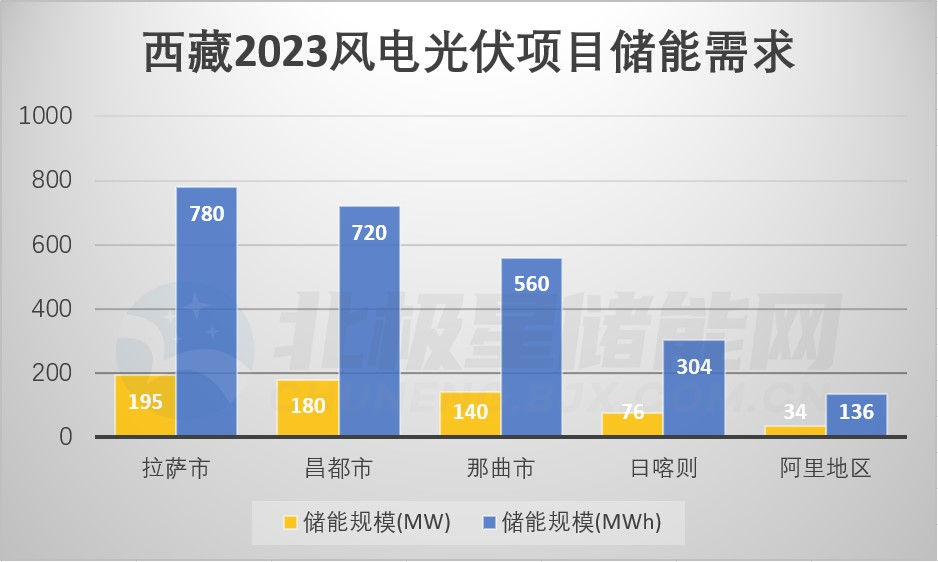目前西藏5地市新能源項目如下,根據(jù)相關(guān)文件要求,配置儲能規(guī)模不低于光伏裝機容量的20%,儲能時長不低于4小時,那么西藏今年開啟的新能源項目配置儲能規(guī)模將超過625MW/2.5GWh,其中以拉薩、昌都儲能需求最為旺盛。阿里地區(qū)的競配文件還明確按要求加裝構(gòu)網(wǎng)型裝置。