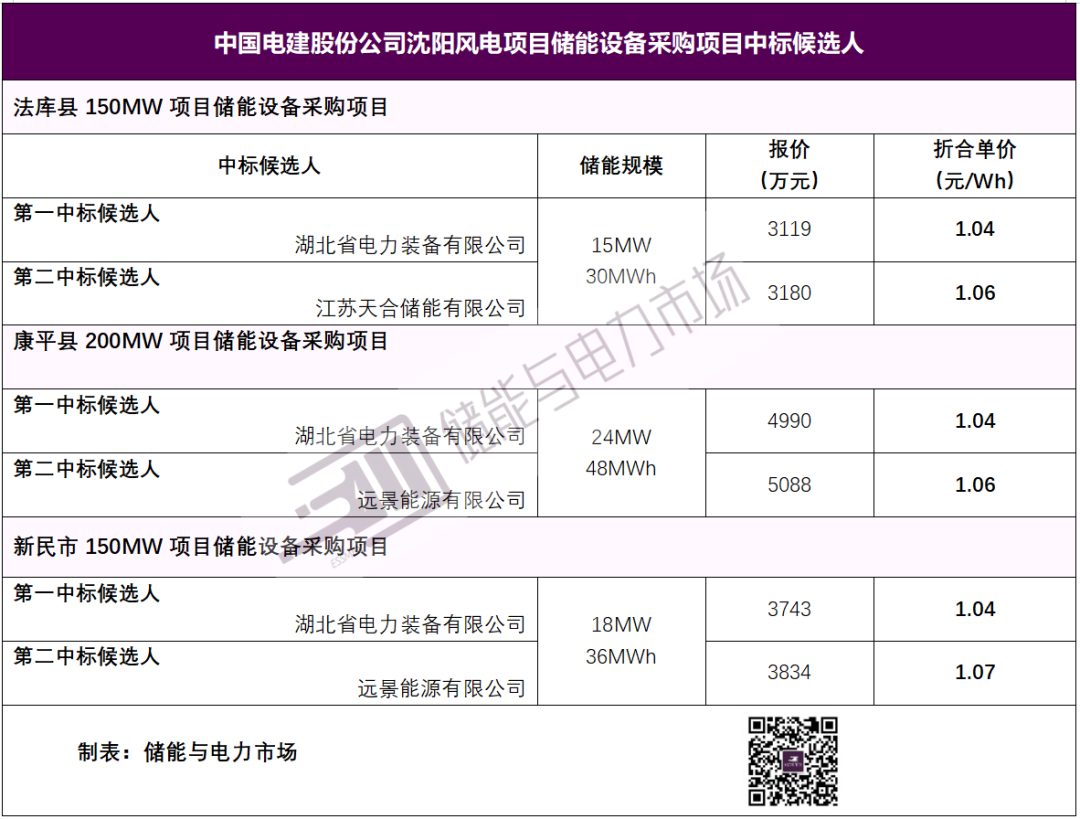 湖北省電力裝備有限公司和江蘇天合儲能有限公司,分別成為第一和第二中標(biāo)候選人;