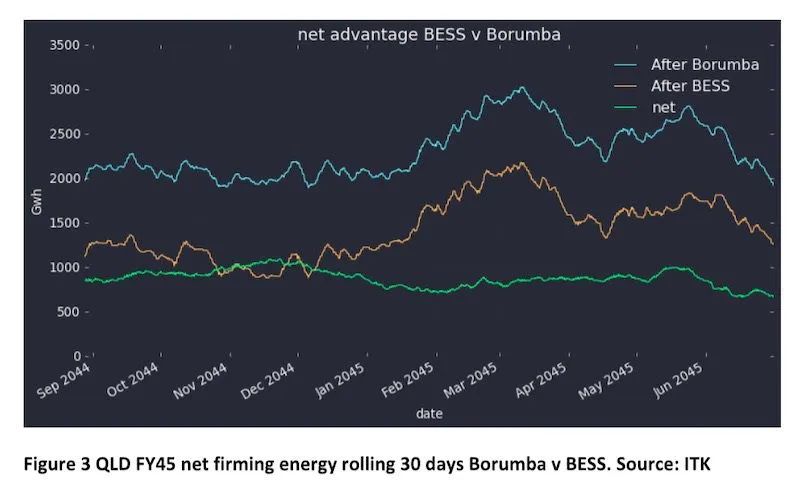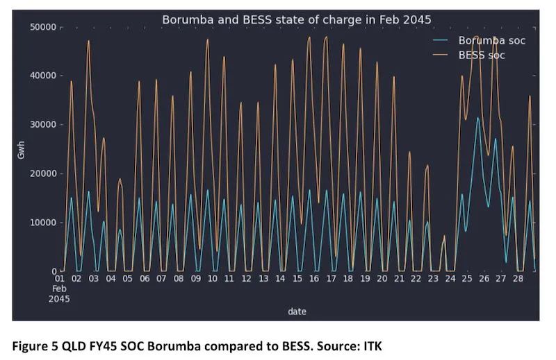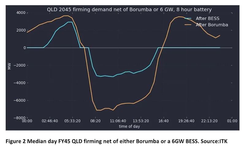 當(dāng)選擇 Borumba 時,將至少需要另外 2000MW 的可靠容量,可能還需要 4000MW 才能趕上 6GW/8 小時 BESS 的能力。