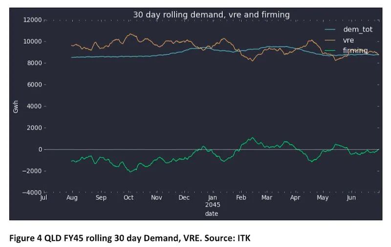 結(jié)果表明,這些資產(chǎn)通常是空的或滿的,因為在 ISP 看來,昆士蘭一旦在 2040 年左右達(dá)到 100% 的 VRE 供應(yīng),就需要超過 48GWh 的儲能和超過 6GW 的穩(wěn)固(Firming)功率。