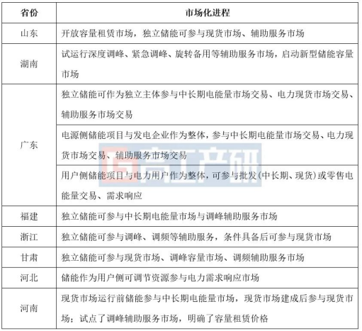 全國典型省份新型儲能參與市場運(yùn)行機(jī)制