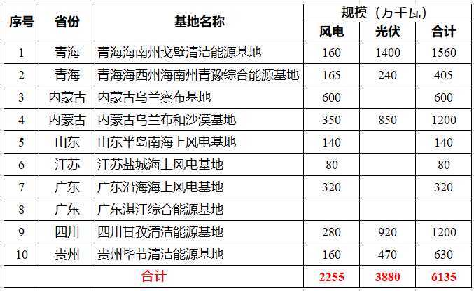除此之外,國(guó)家電投還獲得了十大新能源基地的開發(fā)權(quán),風(fēng)電、光伏項(xiàng)目的規(guī)模合計(jì)超過6135萬(wàn)千瓦。