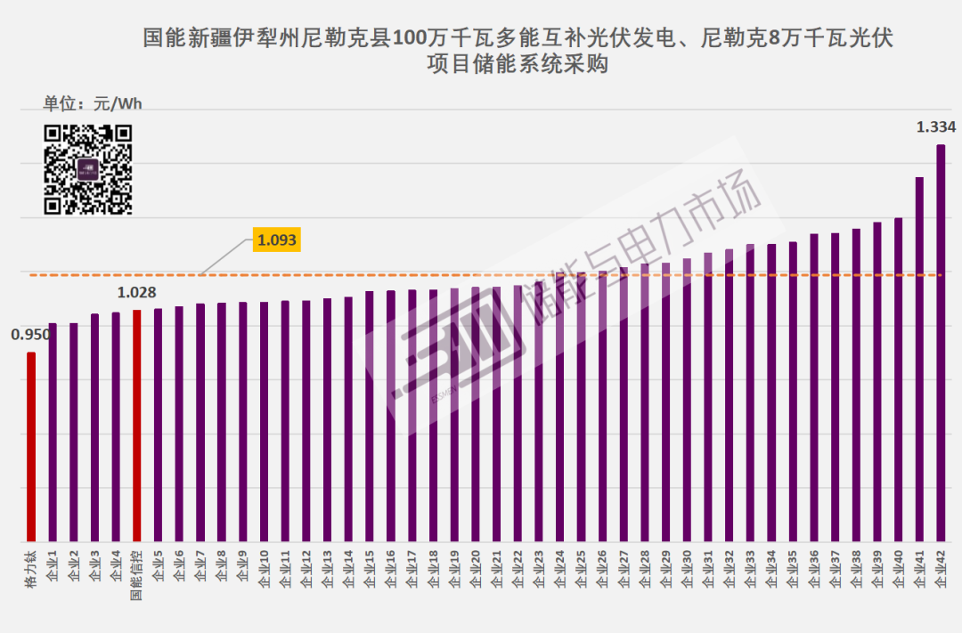 該項(xiàng)目吸引了超過40家企業(yè)競標(biāo),報(bào)價(jià)范圍0.95-1.334元/Wh。