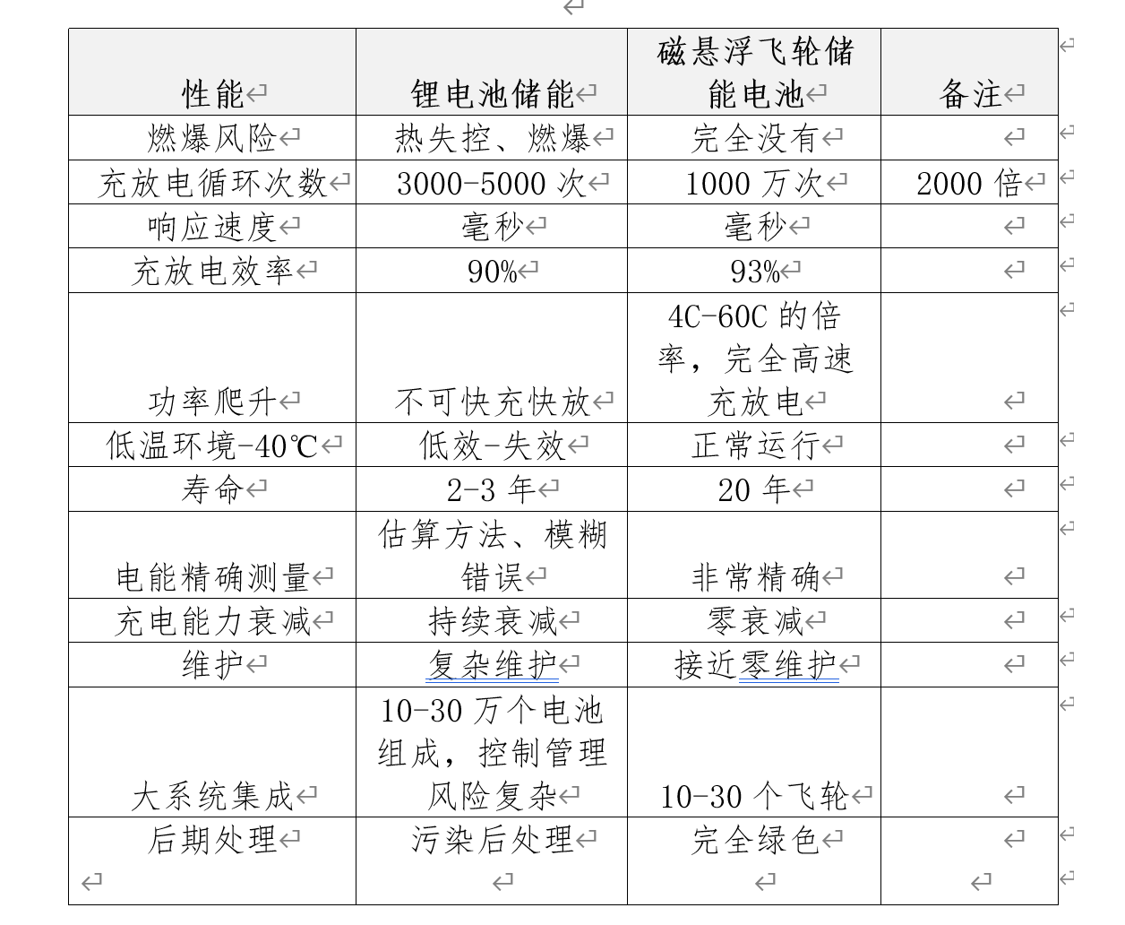從技術(shù)角度看,電源側(cè)調(diào)頻的突出特點是高頻次和高響應(yīng)速度,高頻次調(diào)頻需要長壽命周期的儲能技術(shù)來支撐,對比常用儲能技術(shù)和應(yīng)用場景,飛輪儲能技術(shù)的優(yōu)勢總結(jié)如下: