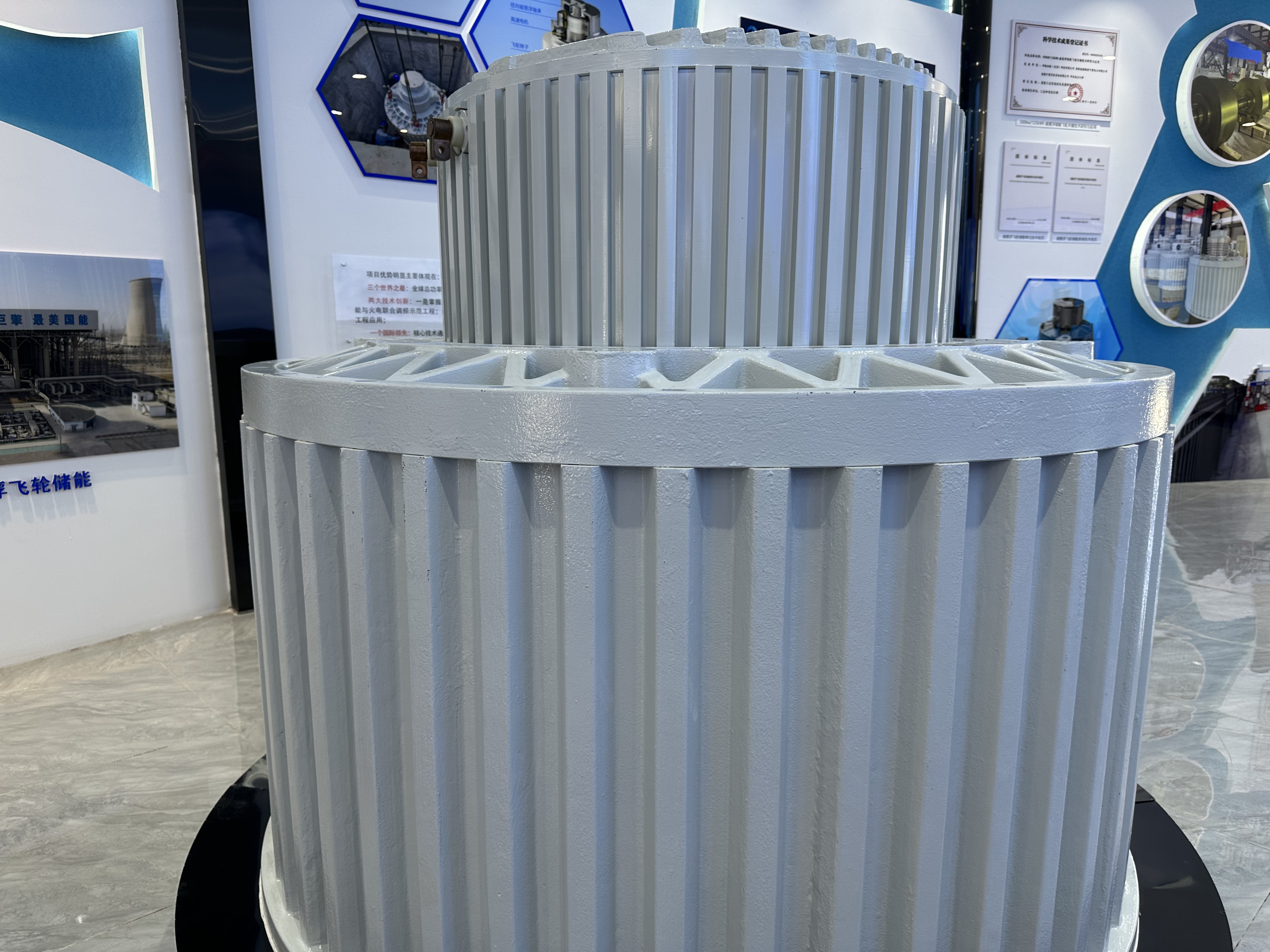 三個世界之最:總功率最大;單體儲電量最大;單體儲電能力參數(shù)最高的大規(guī)模飛輪儲能火電調(diào)頻項目。