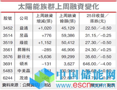 新日光、昱晶、茂迪、益通、升陽科等電池廠受此次美方課征重稅影響最大,上周一度傳出業(yè)者遭課稅率偏低,市場(chǎng)出現(xiàn)押寶行情,根據(jù)統(tǒng)計(jì),上周融資除碩禾和升陽科逆勢(shì)減少外,其余個(gè)股融資都增加,以新日光大增5,636張最高,此次利空超乎市場(chǎng)預(yù)期,今天恐出現(xiàn)失望性賣壓。