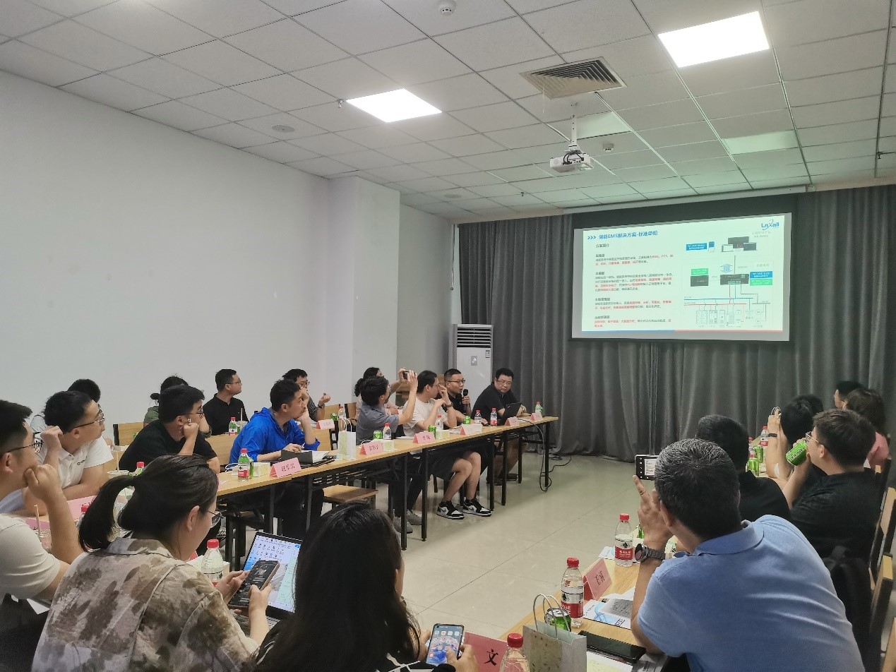 現(xiàn)場座談會由米娜開場主持,她首先代表公司向?qū)<医M的到來表示熱烈歡迎!其后,王雷雷向在座專家系統(tǒng)介紹了公司業(yè)務(wù)發(fā)展、全新一代能量管理系統(tǒng)(EMS)和站控能量柜產(chǎn)品,以及不同應(yīng)用場景解決方案。