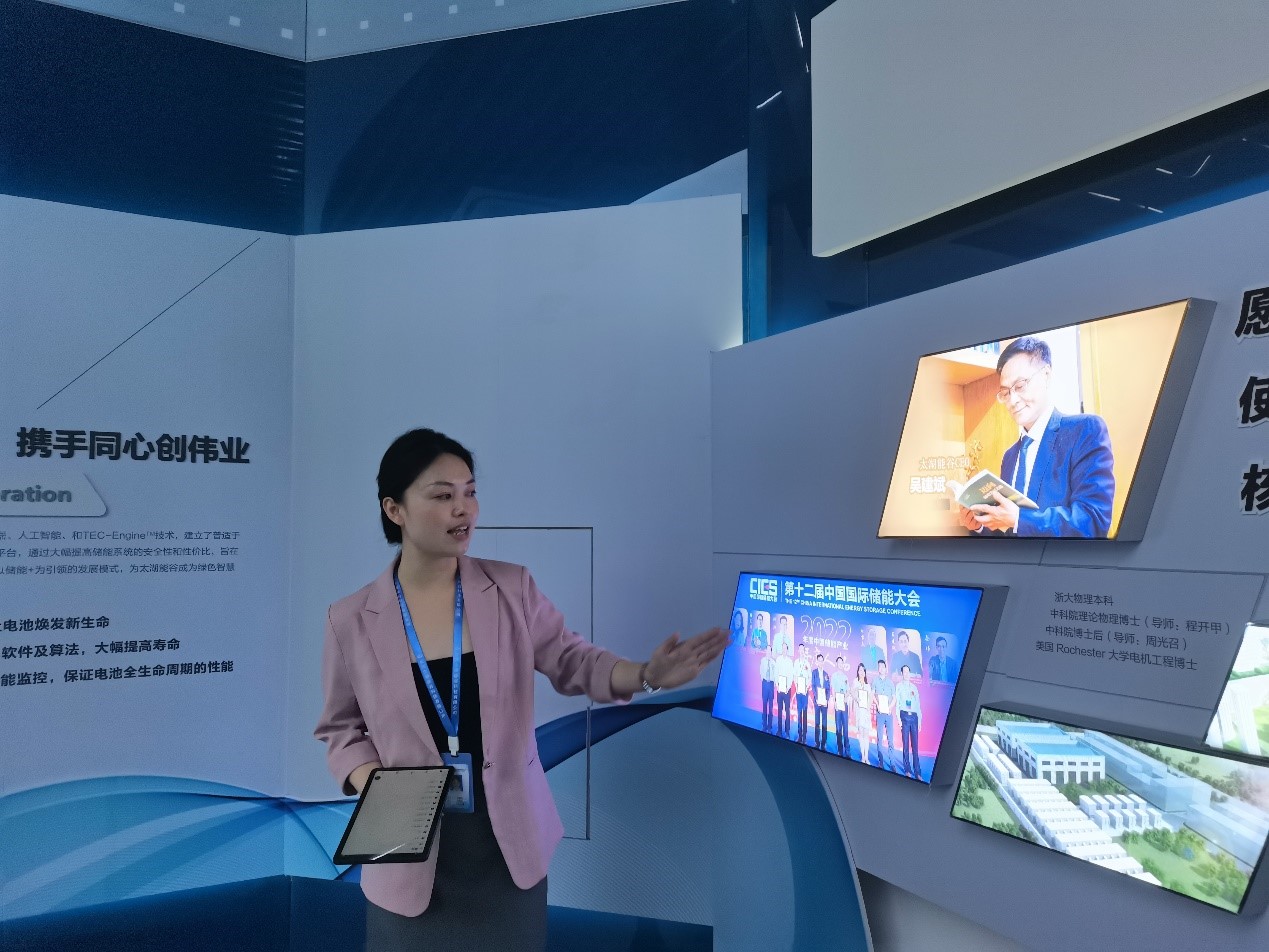 項目交流結束后,專家組一行驅車前往長興太湖能谷科技有限公司,在公司領導的陪同下,參觀了數(shù)字化展廳,在工作人員的講解下,深入了解太湖能谷近年來的發(fā)展、取得的成就、產品及技術研發(fā)實力、項目應用案例。