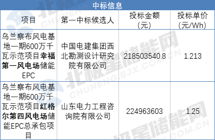 中國儲能網(wǎng)訊:7月12日,國家電投內(nèi)蒙古烏蘭察布風電儲能EPC招標公布中標候選人。中國電建集團西北勘測設(shè)計研究院有限公司和山東電力工程咨詢院有限公司分別為兩個項目的第一中標候選人。