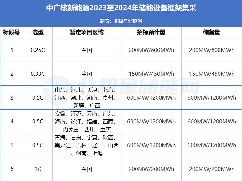 中國儲(chǔ)能網(wǎng)訊:7月18日,中廣核新能源發(fā)布2023至2024年儲(chǔ)能設(shè)備框架集采公告。招標(biāo)共分6個(gè)標(biāo)段,招標(biāo)預(yù)計(jì)量2.35GW/5.05GWh,備用量2.35GW/5.05GWh。