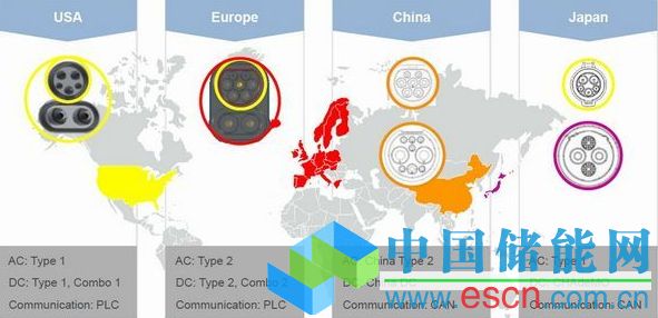 在充電接口方面,目前,國(guó)際上主要有五套充電樁標(biāo)準(zhǔn),第一套是由國(guó)際電工委員會(huì)創(chuàng)立的標(biāo)準(zhǔn)ICE標(biāo)準(zhǔn),其次是由美國(guó)汽車(chē)工程師協(xié)會(huì)創(chuàng)立的SAE標(biāo)準(zhǔn),第三套是歐洲汽車(chē)工業(yè)協(xié)會(huì)提出的ACEA標(biāo)準(zhǔn),第四套是由日本電動(dòng)汽車(chē)協(xié)會(huì)和日本電動(dòng)車(chē)充電協(xié)會(huì)推出的CHAdeMO標(biāo)準(zhǔn),中國(guó)也于2006年推出了自己的標(biāo)準(zhǔn),發(fā)布了《電動(dòng)汽車(chē)傳導(dǎo)充電用插頭、插座、車(chē)輛耦合器和車(chē)輛插孔通用要求》。