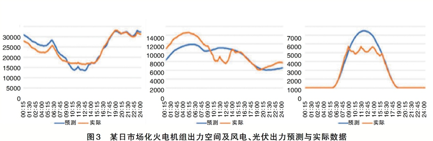 按照日前披露的市場(chǎng)邊界信息,當(dāng)天市場(chǎng)化火電機(jī)組的出力空間最低值出現(xiàn)在12∶45,僅有850萬(wàn)千瓦;最高值出現(xiàn)在23∶15,達(dá)到2789萬(wàn)千瓦;市場(chǎng)化火電出力空間的峰谷比達(dá)到3.28,最小值僅有最大值的30.5%。再考慮正負(fù)備用容量,這一比值會(huì)進(jìn)一步下降至25.3%。這樣的峰谷差,僅通過(guò)所有運(yùn)行機(jī)組在其可調(diào)出力范圍內(nèi)調(diào)節(jié)明顯不足以滿足日內(nèi)調(diào)峰需求,啟停調(diào)峰不可避免。事實(shí)也證明,當(dāng)天共有6臺(tái)機(jī)組(約240萬(wàn)千瓦)進(jìn)行了日內(nèi)啟停調(diào)峰,另有3臺(tái)機(jī)組停機(jī)轉(zhuǎn)備用、3臺(tái)機(jī)組啟機(jī)頂晚峰(容量都在100萬(wàn)千瓦左右),按當(dāng)時(shí)的啟動(dòng)費(fèi)用補(bǔ)償標(biāo)準(zhǔn)測(cè)算,全天合計(jì)產(chǎn)生啟動(dòng)費(fèi)用補(bǔ)償約600萬(wàn)元。而從風(fēng)光實(shí)際出力情況來(lái)看,當(dāng)天中午還產(chǎn)生了少量的棄風(fēng)棄光。