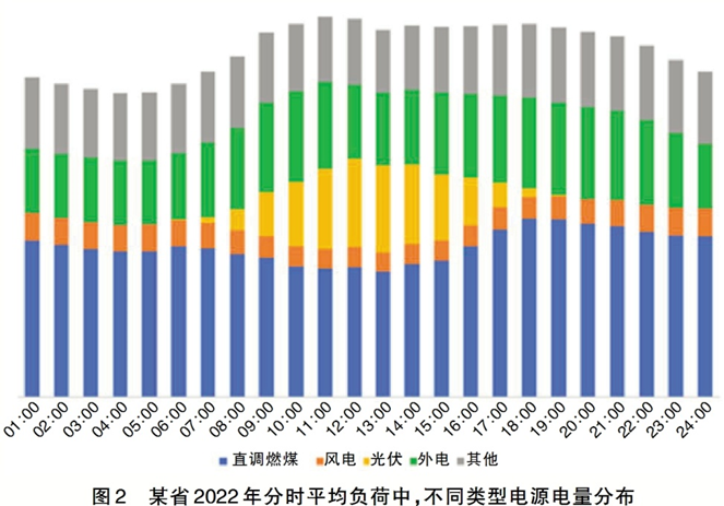 分析該省電量構(gòu)成,不難發(fā)現(xiàn),光伏裝機(jī)的大規(guī)模增長(zhǎng)是導(dǎo)致機(jī)組頻繁啟停的首要因素,而省外來(lái)電調(diào)節(jié)范圍偏窄也使得省內(nèi)火電承擔(dān)了更多的調(diào)峰職能(見圖2)。