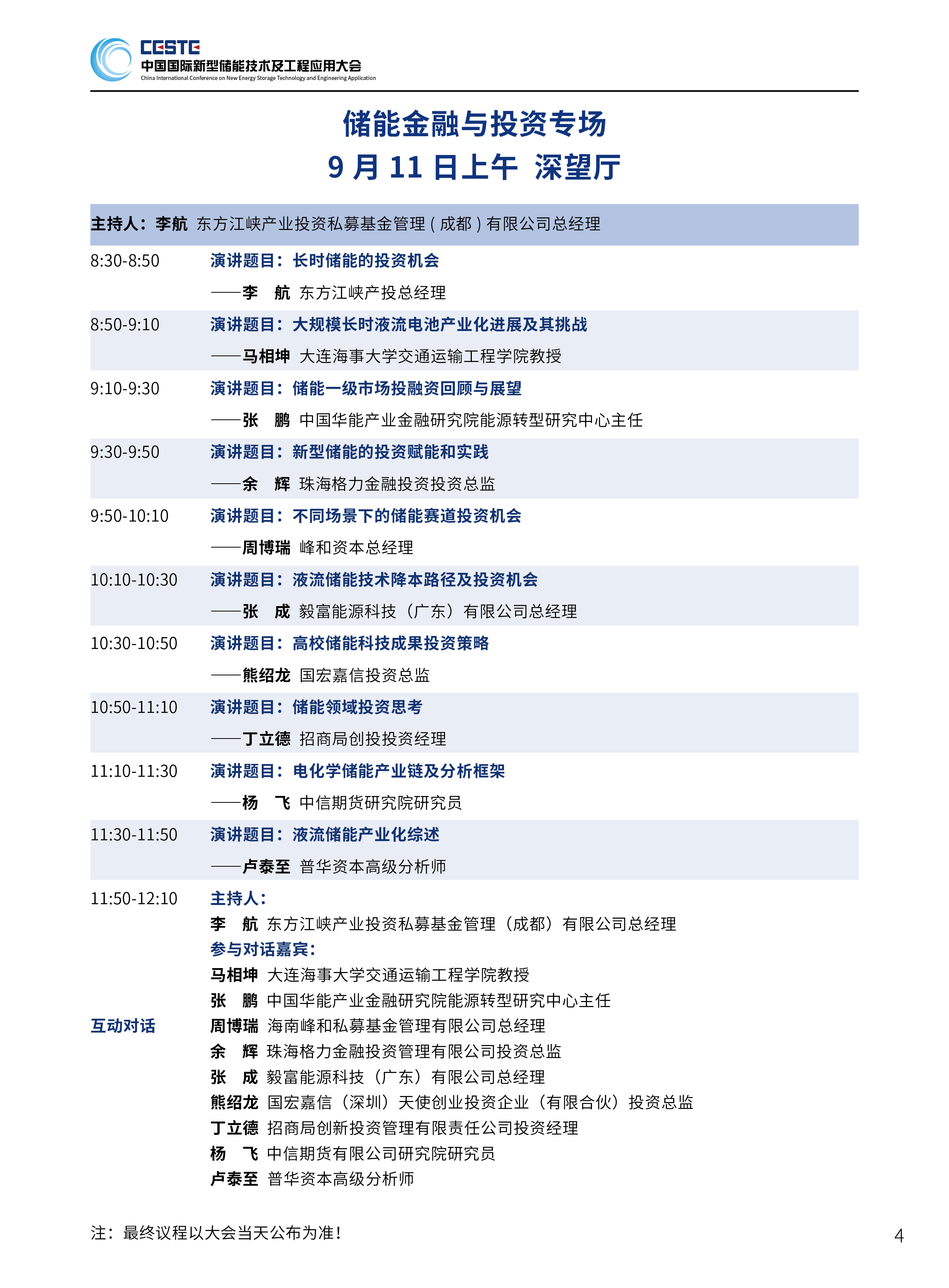 本屆大會將安排:大會開幕式暨碳中和能源院士高峰論壇、長時儲能技術(shù)及應(yīng)用、共享儲能、工商業(yè)儲能、混合儲能解決方案、安全與系統(tǒng)集成、新能源動力系統(tǒng)控制技術(shù)、儲能金融與投資、全生命周期碳足跡分析與應(yīng)用技術(shù)、儲能材料、回收與裝備等10個專場論壇,以下為儲能金融與投資專場議程。