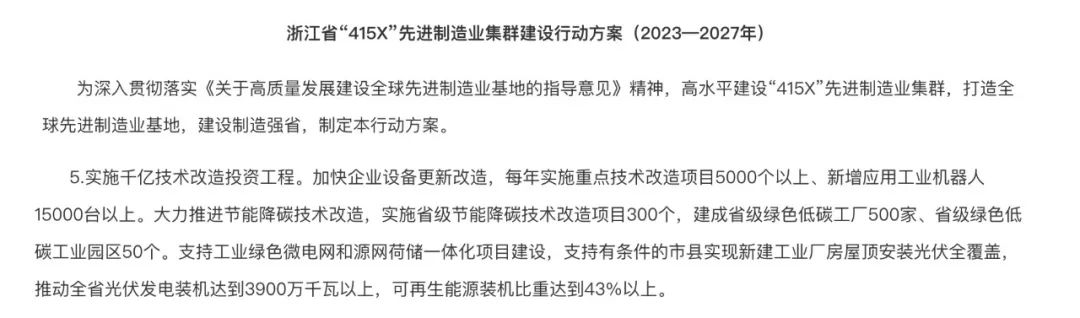 日前,浙江省政府印發(fā)《浙江省“415X”先進(jìn)制造業(yè)集群建設(shè)行動(dòng)方案(2023—2027年)》指出,支持工業(yè)綠色微電網(wǎng)和源網(wǎng)荷儲(chǔ)一體化項(xiàng)目建設(shè),支持有條件的縣(市、區(qū))新建工業(yè)廠房屋頂光伏全覆蓋,到2025年全市累計(jì)光伏發(fā)電裝機(jī)容量達(dá)300萬(wàn)千瓦,清潔能源裝機(jī)占比49%。溫州市積極響應(yīng)行動(dòng)方案,建成該市首個(gè)“光伏+儲(chǔ)能+充電+放電+電池檢測(cè)“五位一體”綠色低碳綜合能源示范站。