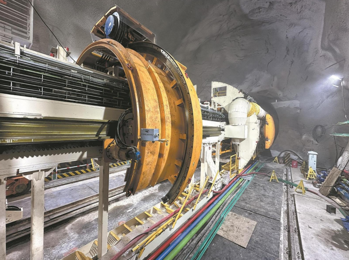 超大傾角可變徑斜井TBM在平江抽水蓄能電站施工現(xiàn)場開挖。肖威 攝