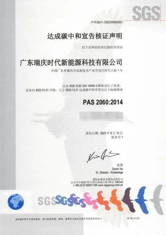 中國儲(chǔ)能網(wǎng)訊:8月11日,寧德時(shí)代全資子公司——廣東瑞慶時(shí)代新能源科技有限公司(以下簡稱“瑞慶時(shí)代”)正式獲得全球知名認(rèn)證機(jī)構(gòu)SGS頒發(fā)的PAS2060碳中和認(rèn)證證書,這標(biāo)志著瑞慶時(shí)代在2022年達(dá)成工廠碳中和,正式躋身零碳工廠行列。這是寧德時(shí)代首個(gè)儲(chǔ)能電池為主的零碳工廠,也是繼四川時(shí)代宜賓工廠之后的第二個(gè)全資電池零碳工廠。
