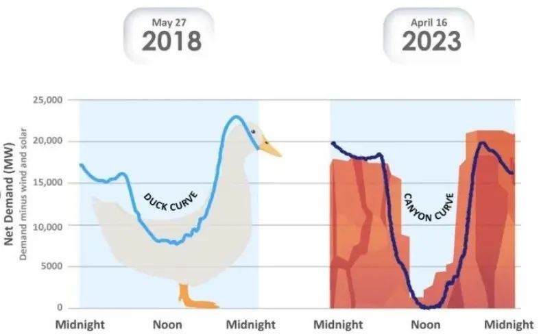 圖2-2 加州電網(wǎng)凈負(fù)荷曲線圖(鴨子曲線、峽谷曲線)