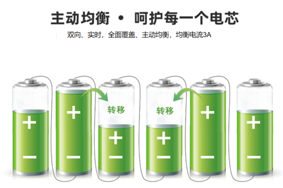 1、雙向轉移:雙向轉移技術,實時調整電池組容量差異,有效延長使用壽命,突破電池單體充放電不一致的瓶頸。