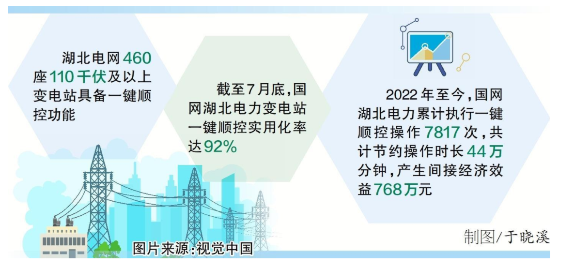 國網(wǎng)湖北電力近年來大力推廣應(yīng)用一鍵順控技術(shù),不斷提升實用化水平。目前,湖北電網(wǎng)110千伏及以上具備一鍵順控功能的變電站共有460座,在國家電網(wǎng)有限公司系統(tǒng)位居前列。2022年至今,該公司累計執(zhí)行一鍵順控操作7817次,共計節(jié)約操作時長44萬分鐘,產(chǎn)生間接經(jīng)濟(jì)效益768萬元。