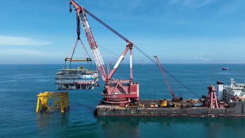 中國儲能網(wǎng)訊:8月24日,福建漳浦六鰲海上風(fēng)電場二期項目海上升壓站上部組塊成功吊裝就位,為全國首個超大單機容量海上風(fēng)電項目安上了“最強心臟”。