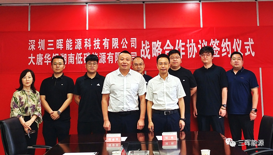 8月29日,三暉能源與大唐華銀湖南低碳能源為了加強雙方在新能源、儲能等領(lǐng)域的合作,推動雙方的各項業(yè)務(wù)發(fā)展,打造利益共同體,雙方基于良好的合作信任關(guān)系,本著平等互利、資源共享、優(yōu)勢互補、共贏發(fā)展的原則,正式達(dá)成戰(zhàn)略合作。大唐華銀湖南低碳能源有限公司執(zhí)行董事、總經(jīng)理程金民與深圳三暉能源科技有限公司總經(jīng)理鄧棟代表雙方簽署了戰(zhàn)略合作協(xié)議,同時雙方市場團(tuán)隊見證簽約。