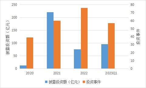 從投融資事件數(shù)量看,2020至2022三年復合增長率接近40%,2023年僅Q1就發(fā)生57次融資事件,接近2021年全年。