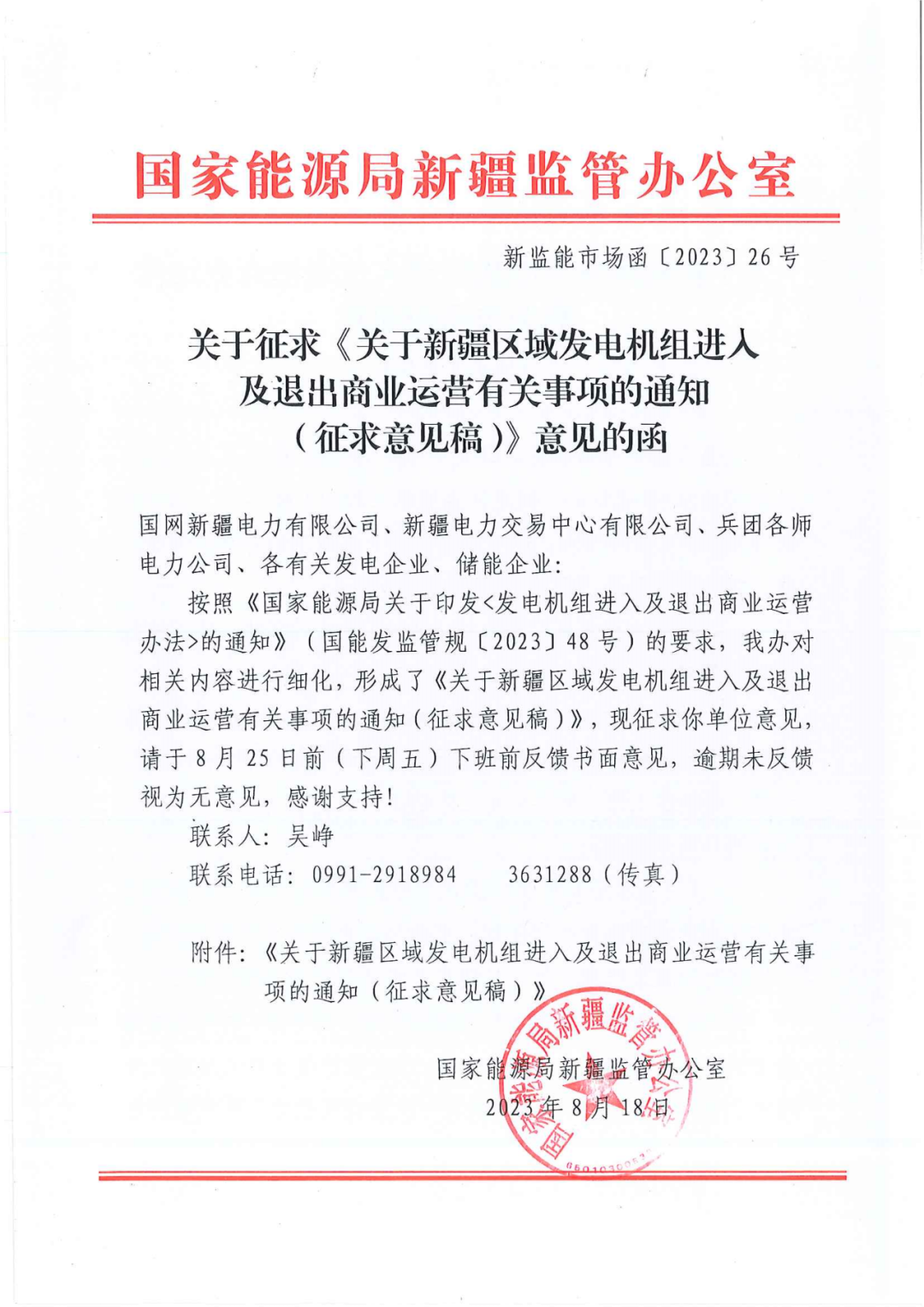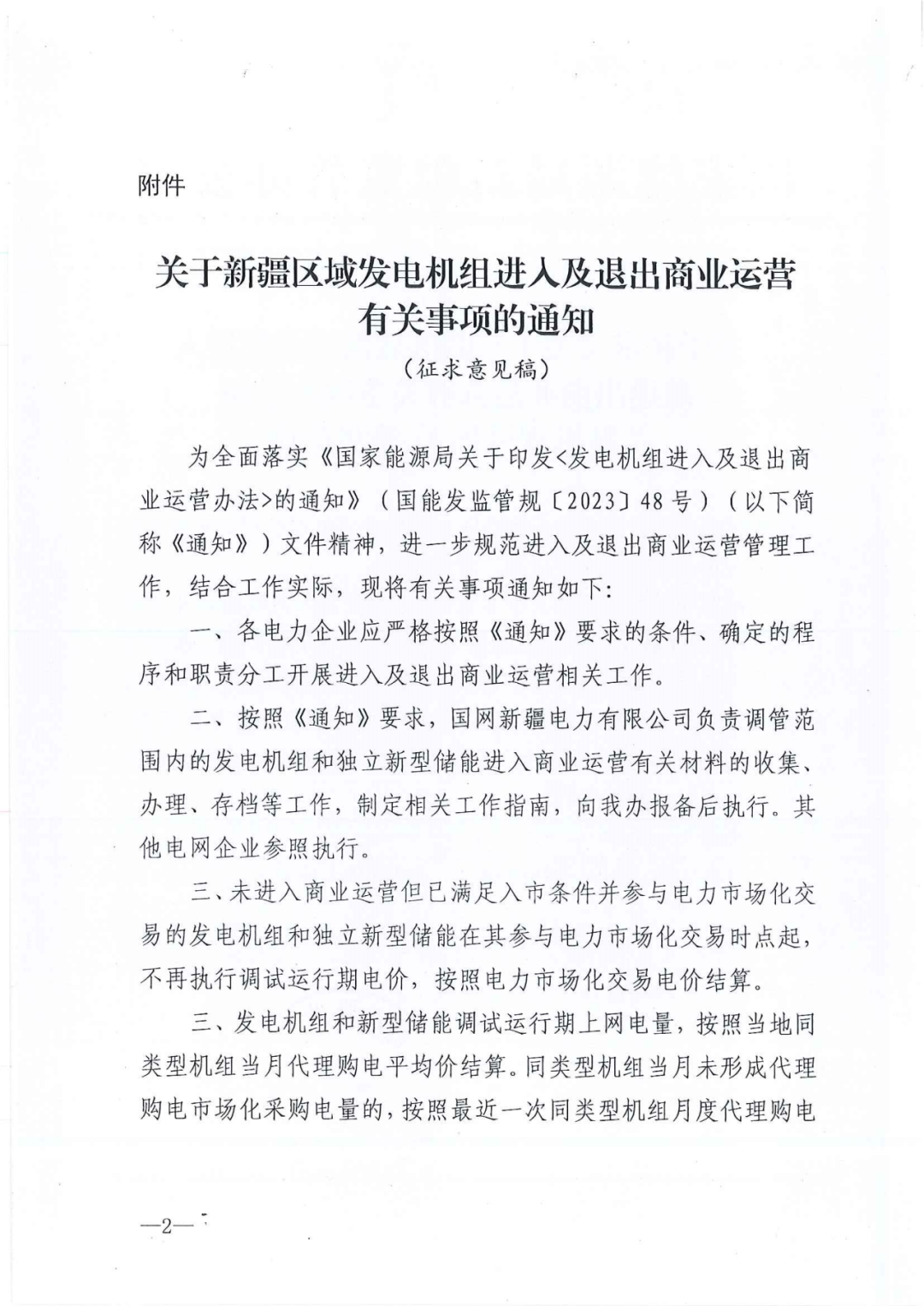 中國儲能網(wǎng)訊:8月28日,新疆能監(jiān)辦就《關(guān)于新疆區(qū)域發(fā)電機組進入及退出商業(yè)運營有關(guān)事項的通知》征求意見。