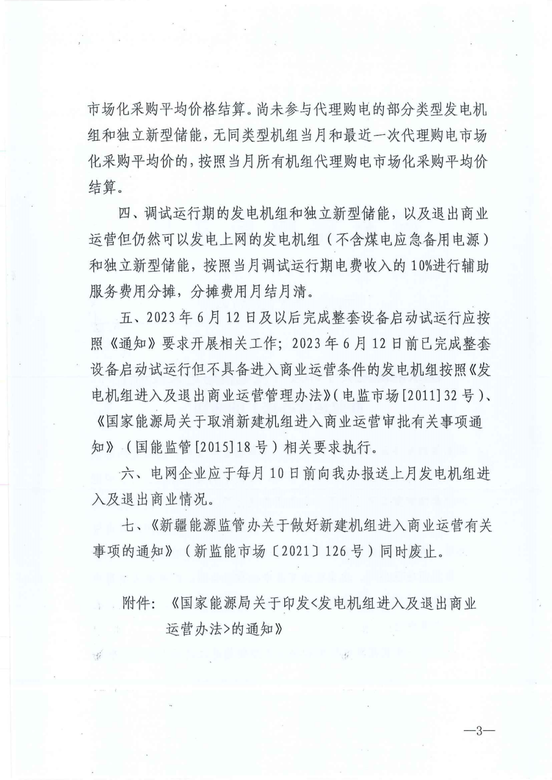 未進入商業(yè)運營但已滿足入市條件并參與電力市場化交易的發(fā)電機組和獨立新型儲能在其參與電力市場化交易時點起,不再執(zhí)行調(diào)試運行期電價,按照電力市場化交易電價結(jié)算。