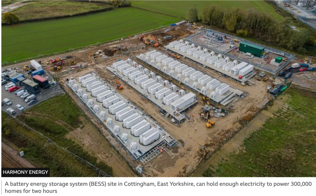 一個通過規(guī)劃系統(tǒng)跟蹤英國150千瓦以上可再生電力計劃進展的政府數(shù)據(jù)庫列出了1145個電池項目,其中93個設施目前正在運營。能源公司選擇的許多地點都在靠近現(xiàn)有國家電網(wǎng)變電站的綠地上。在東約克郡的科廷厄姆,一個大型BESS于2022年底開業(yè),旁邊是一個變電站,該變電站將連接到正在建設的海上風電場。該系統(tǒng)儲存的電力足以為30萬戶家庭供電兩小時,在開始運營時被稱為歐洲同類網(wǎng)站中最大的。